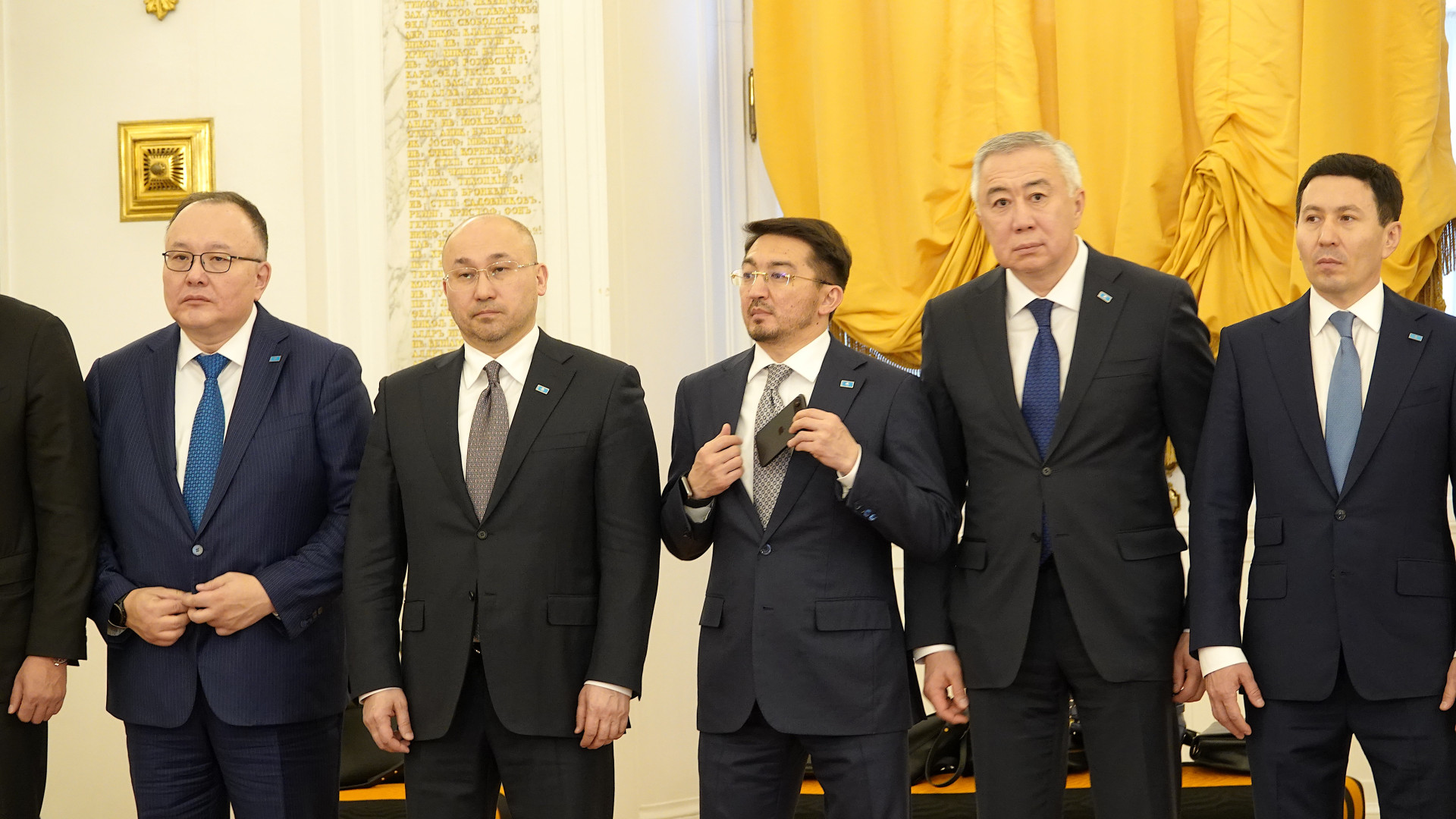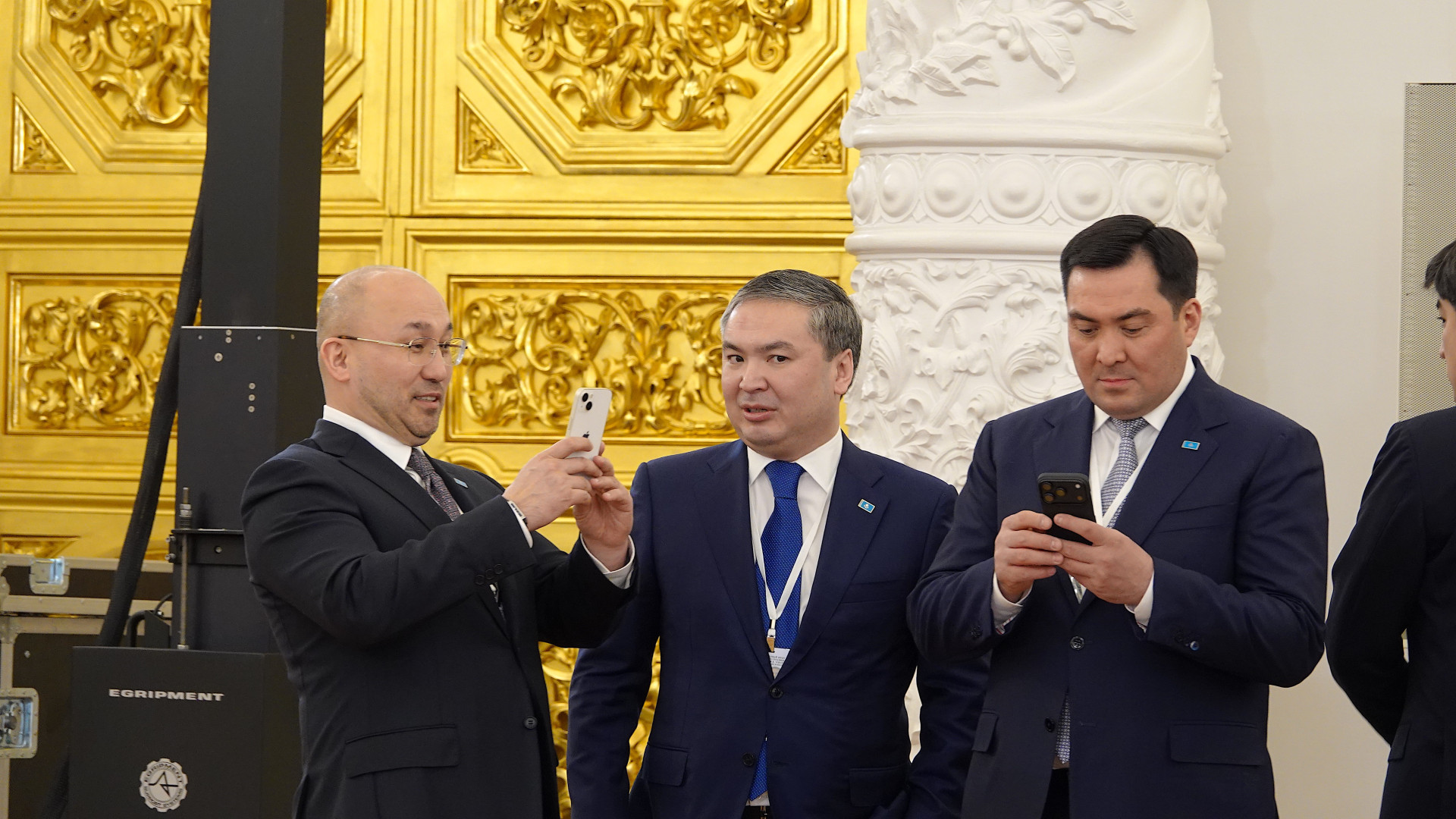 Казахстанская делегация внимательно осматривает зал. Глава Нацбанка Тимур Сулейменов достаёт телефон с, кажется, пятью камерами и фотографирует позолоченные детали. В его случае выражение "знает цену золота" звучит буквально.
