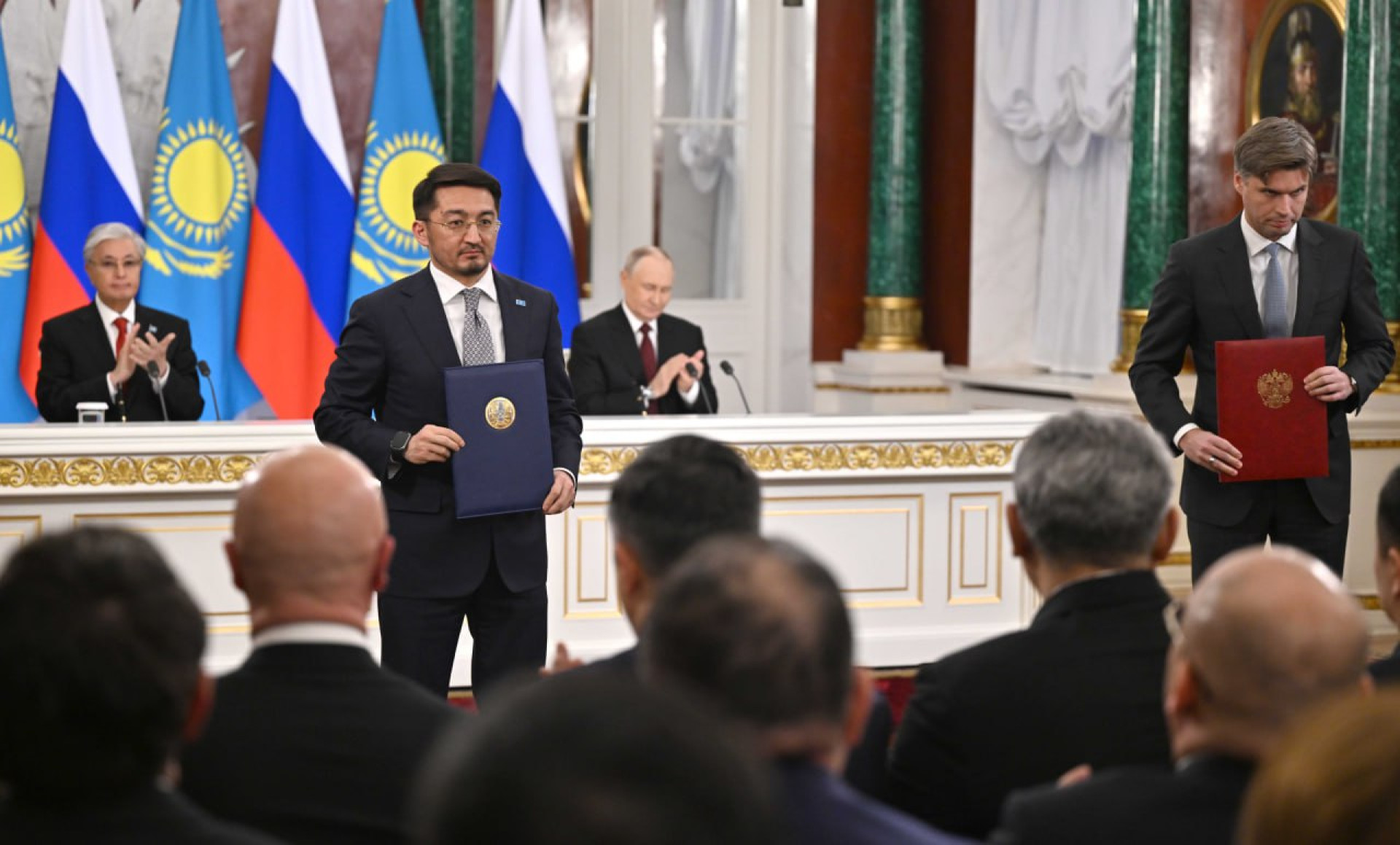 Касым-Жомарт Токаев и Владимир Путин ставят подписи под документом, который выводит отношения Казахстана и России на новый уровень — уровень всеобъемлющего стратегического партнёрства и союзничества.
