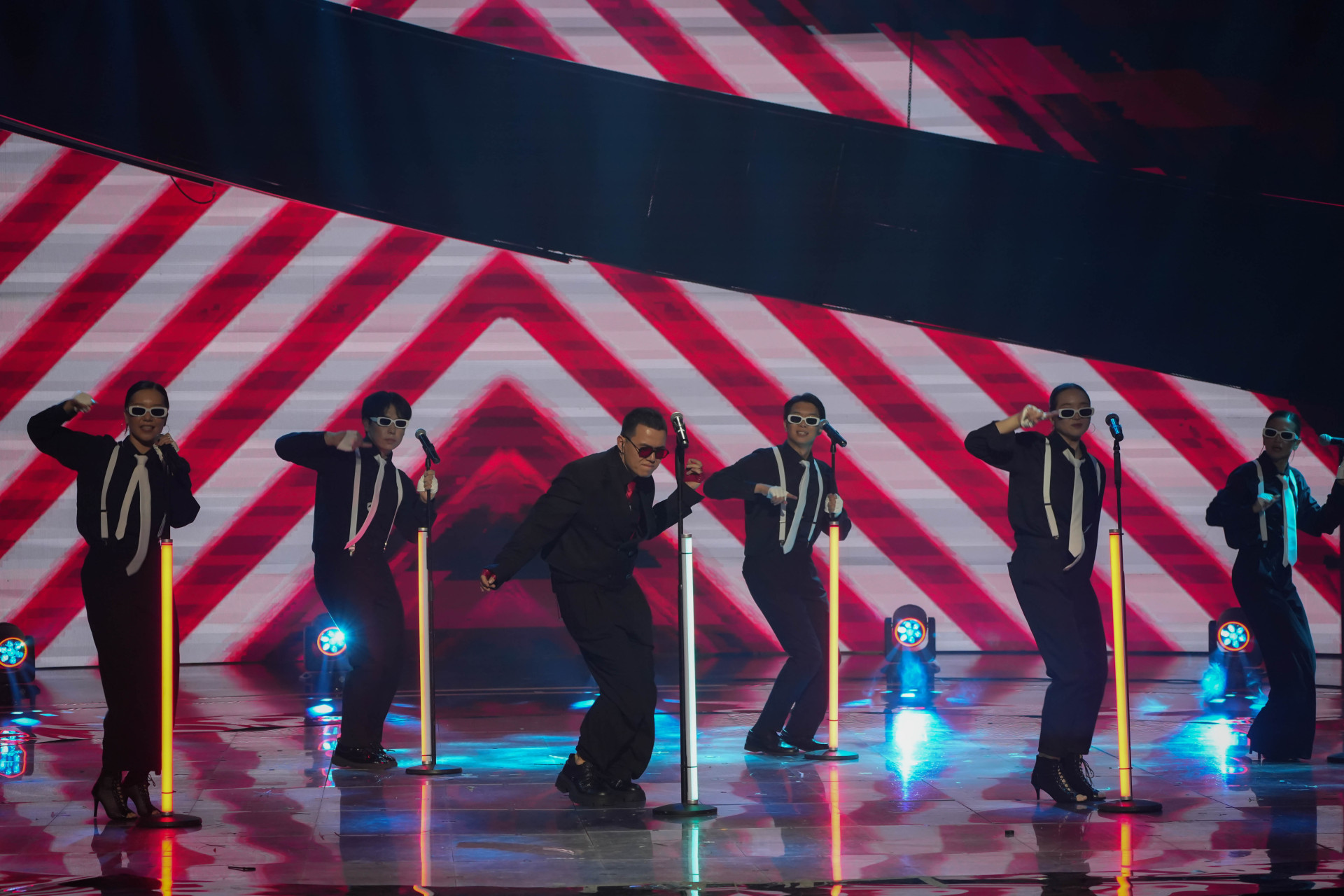 А вот и он сам - для второго эпизода шоу он выбрал образ total black. Батырхану Маликову помогали танцоры в белых подтяжках.