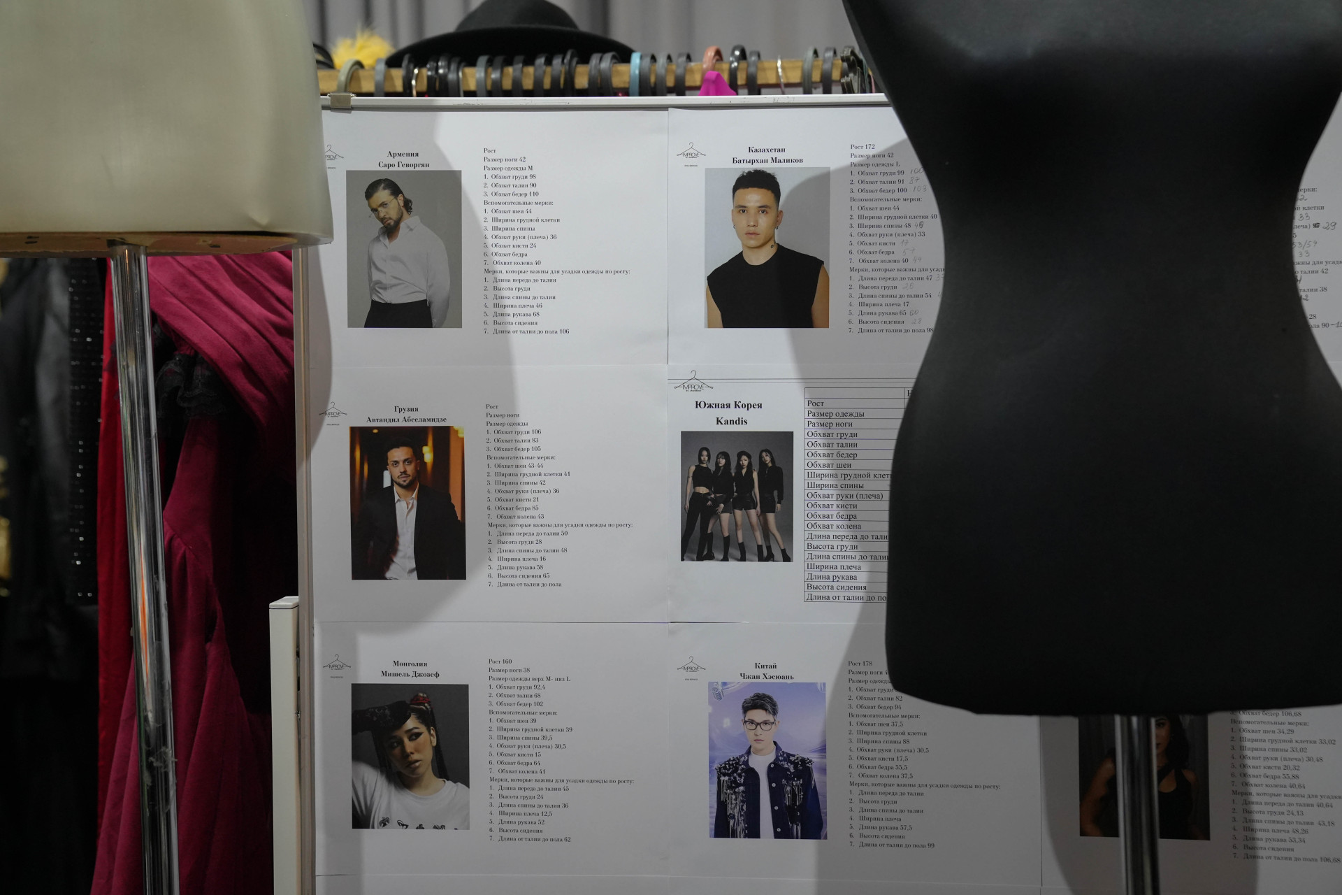 На каждого участника в костюмерной собрано "досье", где указаны все параметры, чтобы одежда сидела на артистах идеально. Если приглядеться, то можно увидеть размер обуви ALEM - самой яркой звезды новой казахстанской эстрады, который, несмотря на успех своих песен, решил попробовать "замахнуться" на новый уровень и стал участником Silk Way Star от нашей страны.