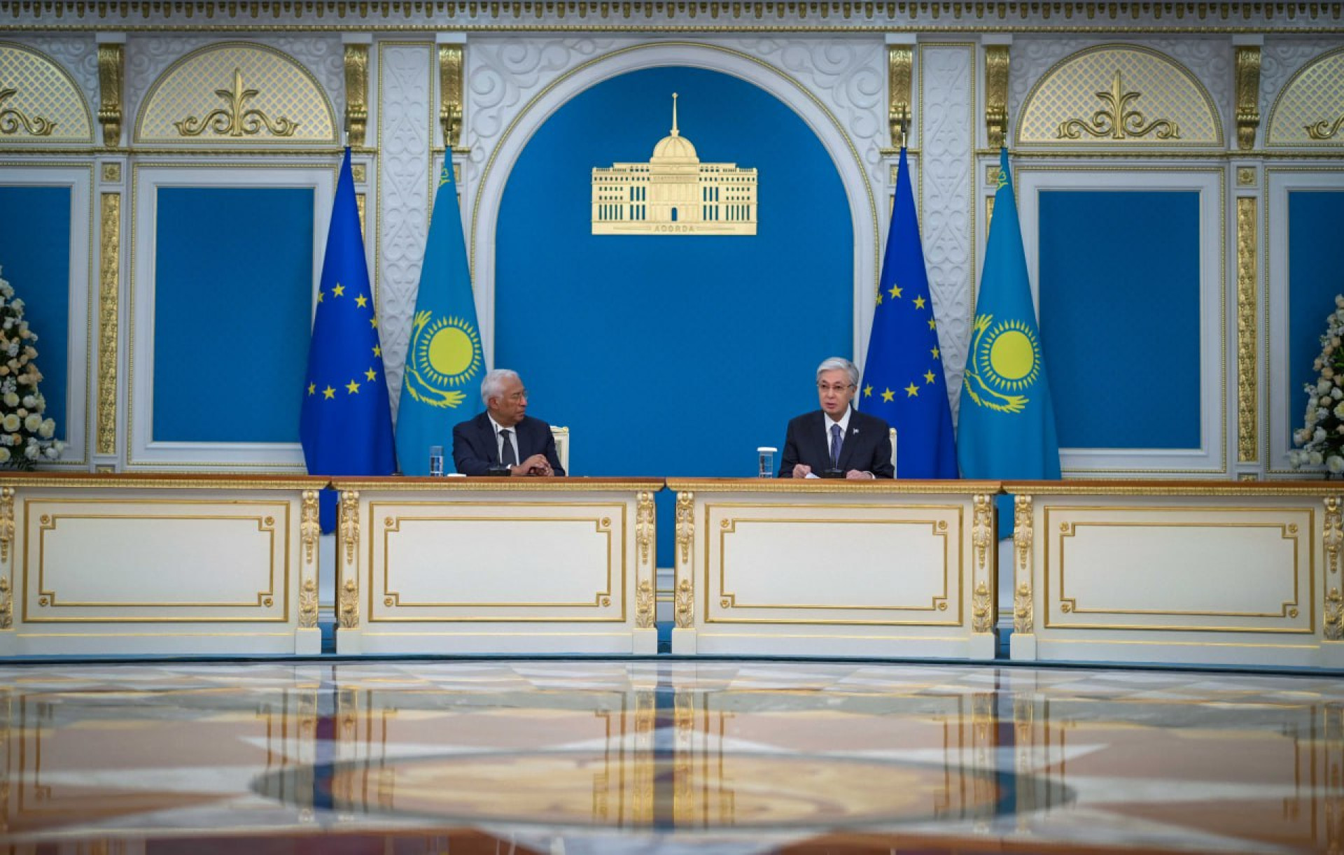 Отдельно он выделяет региональный контекст — сотрудничество ЕС со странами Центральной Азии — и ненавязчиво делает комплимент лично Токаеву, напоминая о его усилиях по укреплению мира на Кавказе. Мир там, добавляет Кошта, открывает дорогу не только к стабильности, но и к Транскаспийскому коридору, который должен связать Европу через Кавказ и Чёрное море.