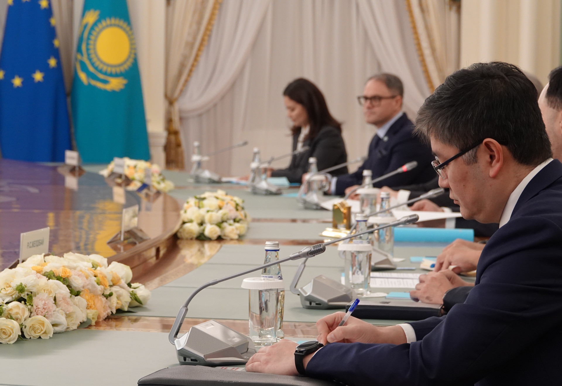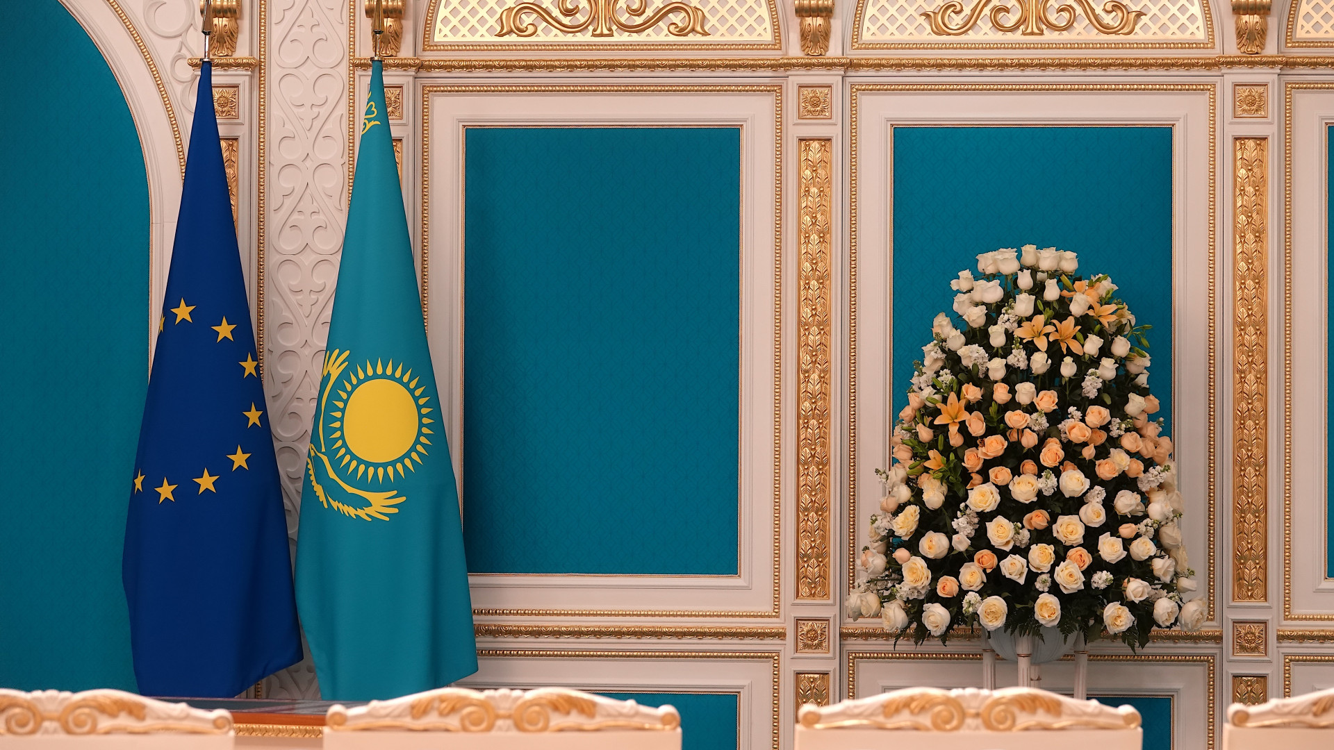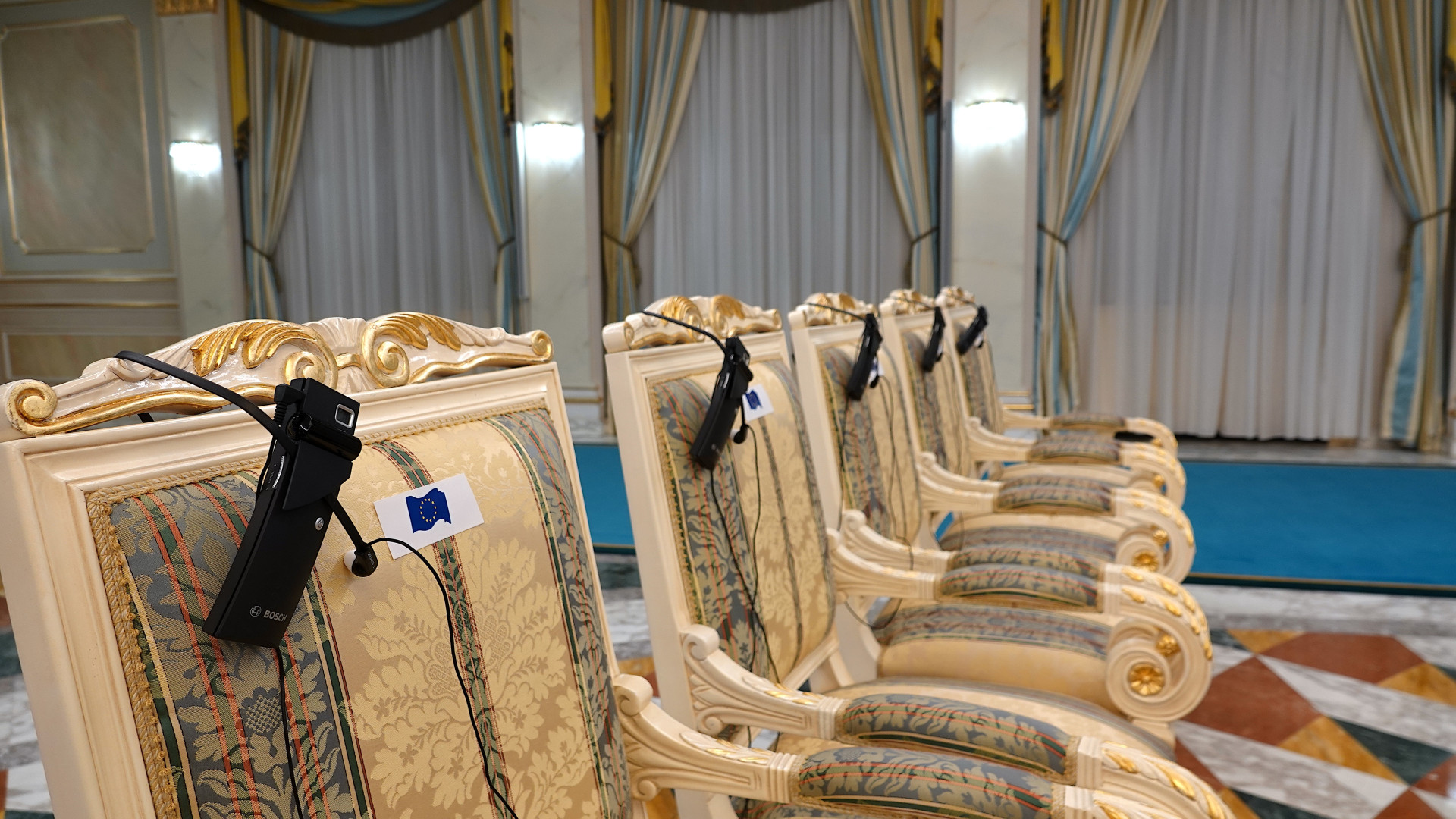 Пока у парадных дверей разворачивался неторопливый церемониал с фотографированием и первым рукопожатием, на третьем этаже Акорды уже наводили последние штрихи перед главным — переговорами Казахстана и Европы.