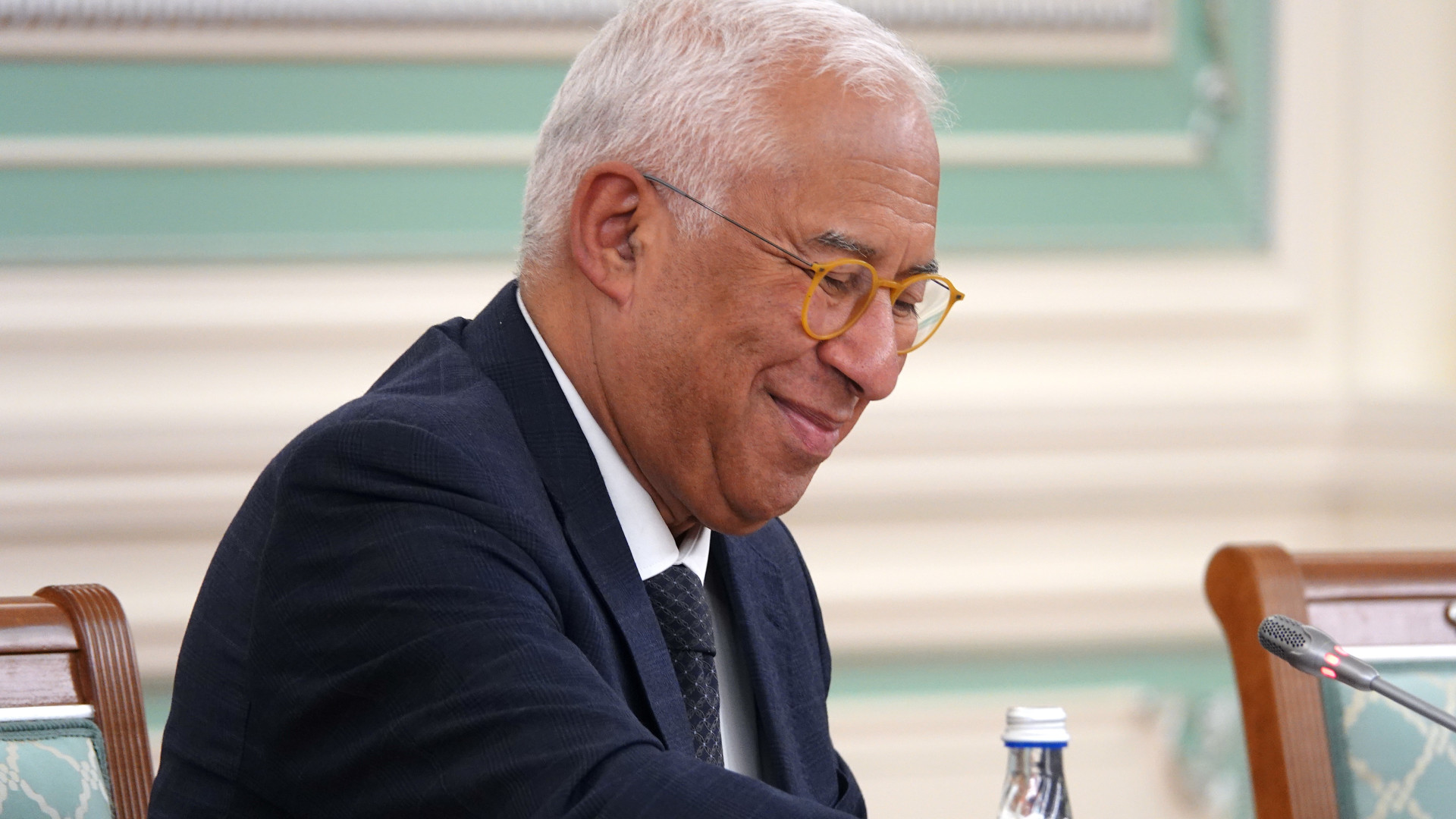 Президент Евросовета Антониу Кошта входит в Акорду по голубой дорожке и идет мимо караула.