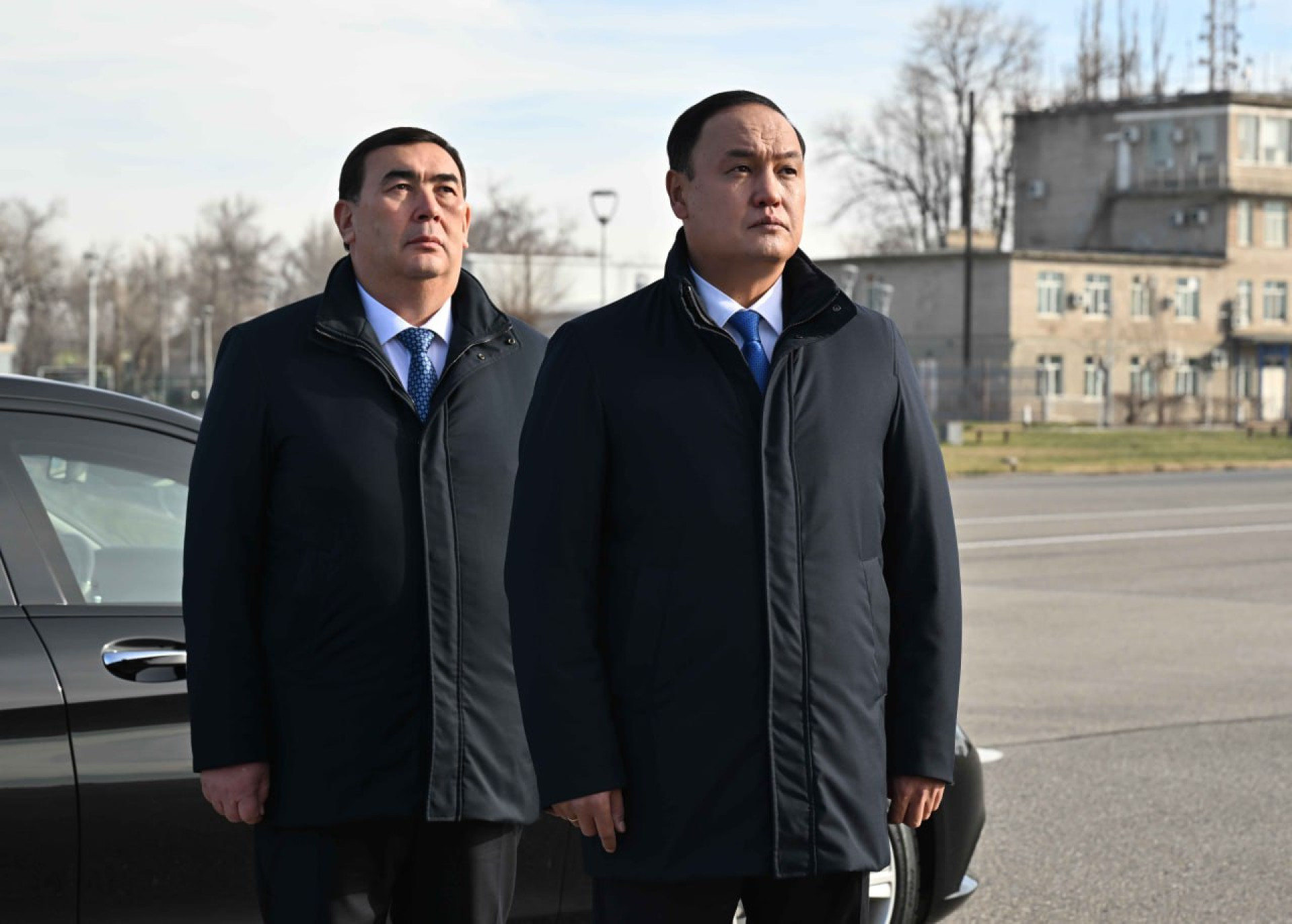 Президентский борт приземлился в Таразе ближе к полудню — к этому часу воздух заметно прогрелся. Возможно, поэтому аким города Бакытжан Орынбеков и аким области Ербол Карашукеев выглядели почти по-весеннему одинаково.