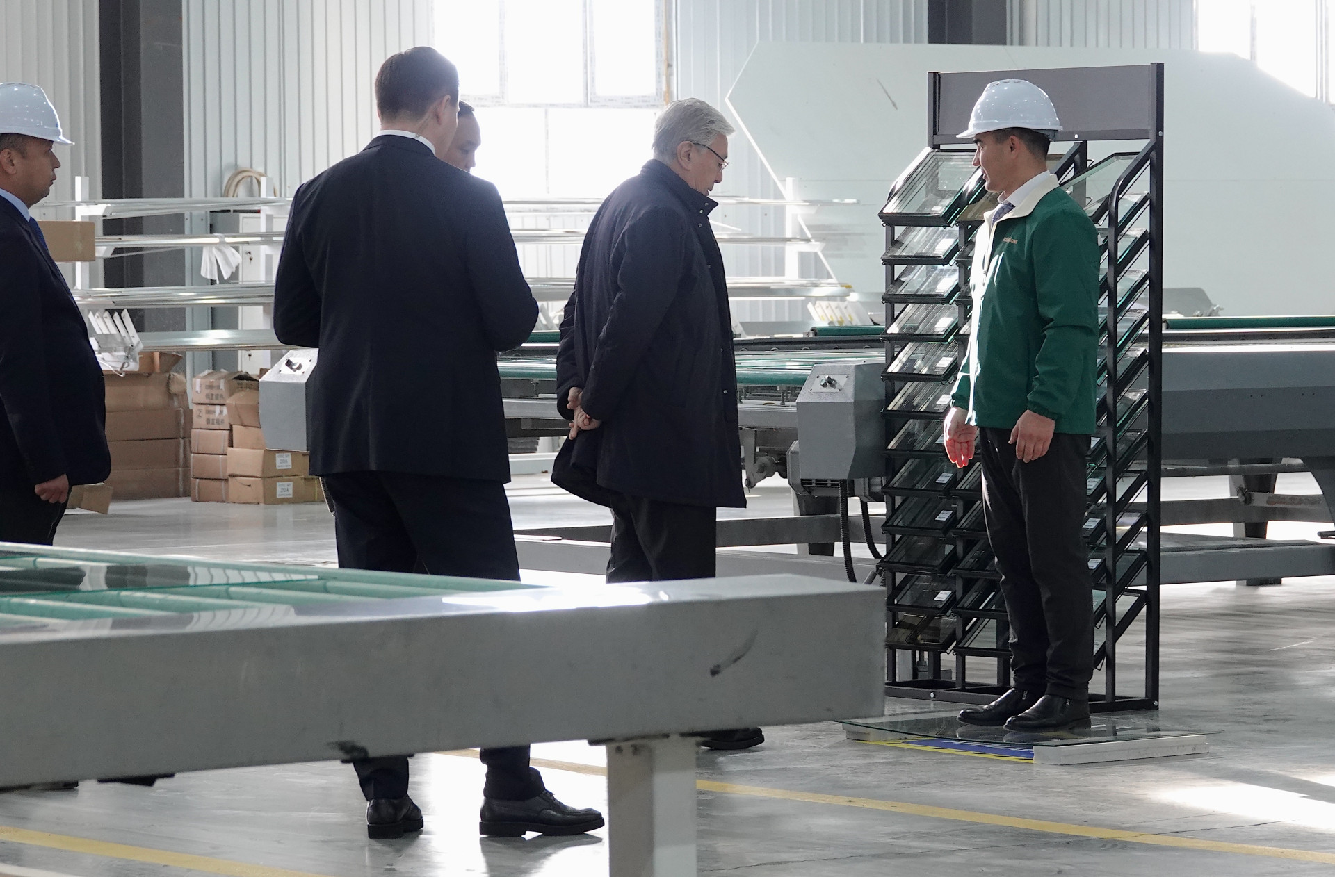 Следующий пункт — предприятие по выпуску закалённого стекла. Его отправляют на стройки в Шымкент, Алматы, Кызылорду и сам Тараз.