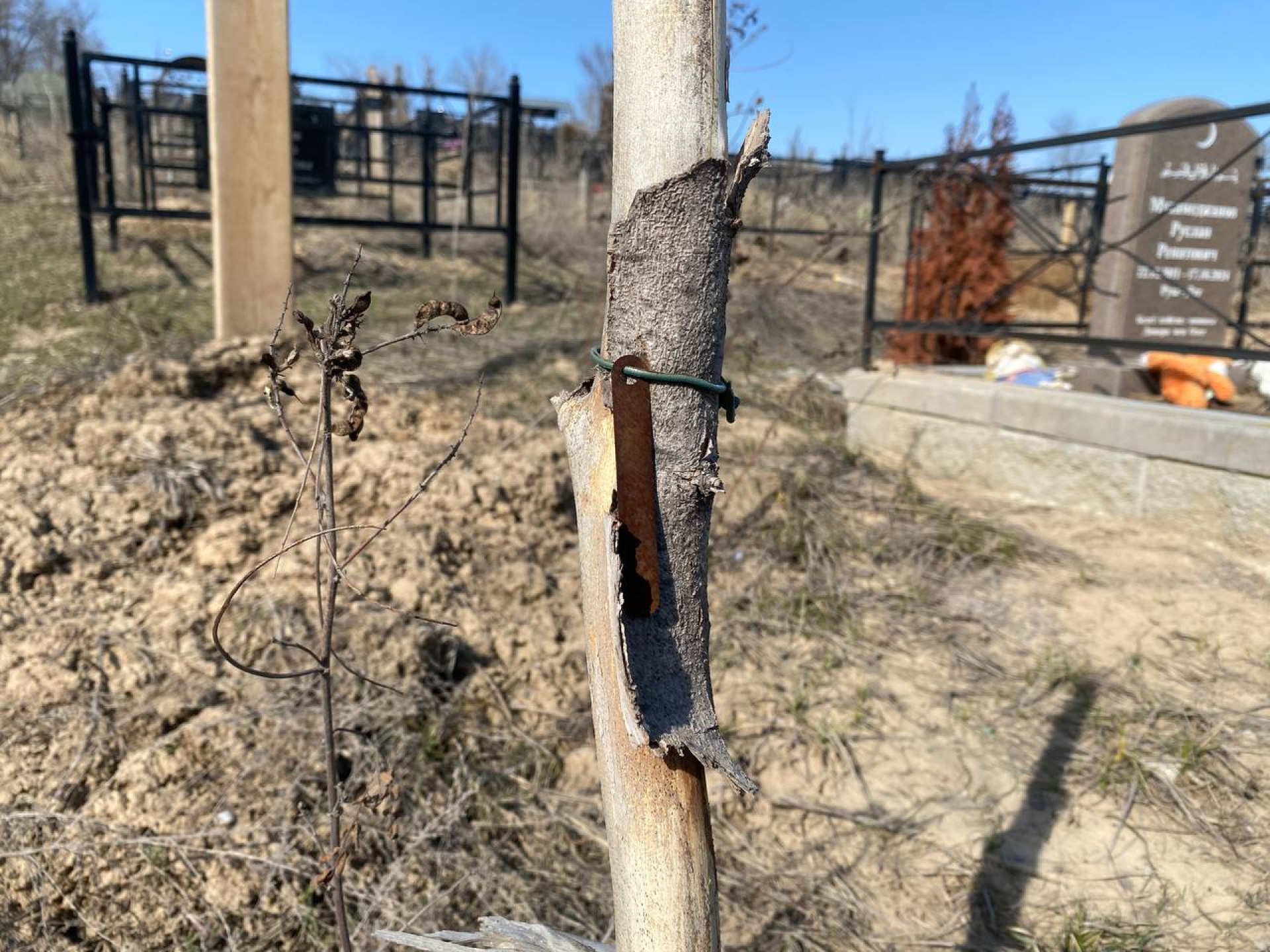А на некоторых таких могильных столбиках и вовсе нет никаких номерков — только повязанная лента.