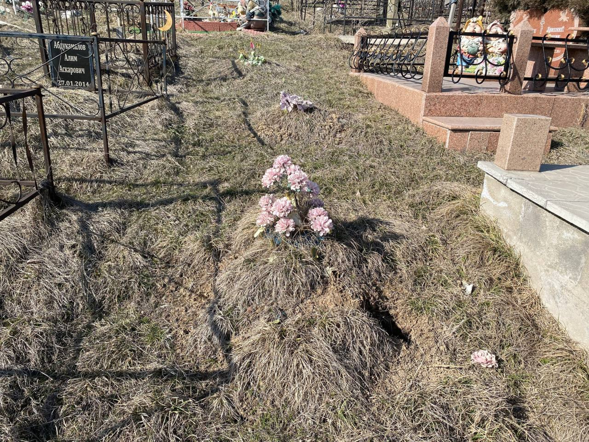 И таких захоронений вы сначала повстречаете десятки, а потом — сотни. Они раскинуты вдоль всего холма и зачастую выкопаны впритык друг к другу. Иногда они скрываются между более ухоженными могилами.