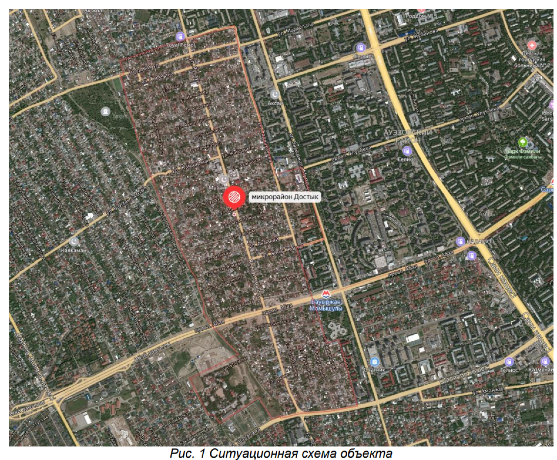 В документах также есть карта района, где проводилось строительство, это квадрат улиц Момышулы — Шаляпина — Райымбека — река Каргалы.