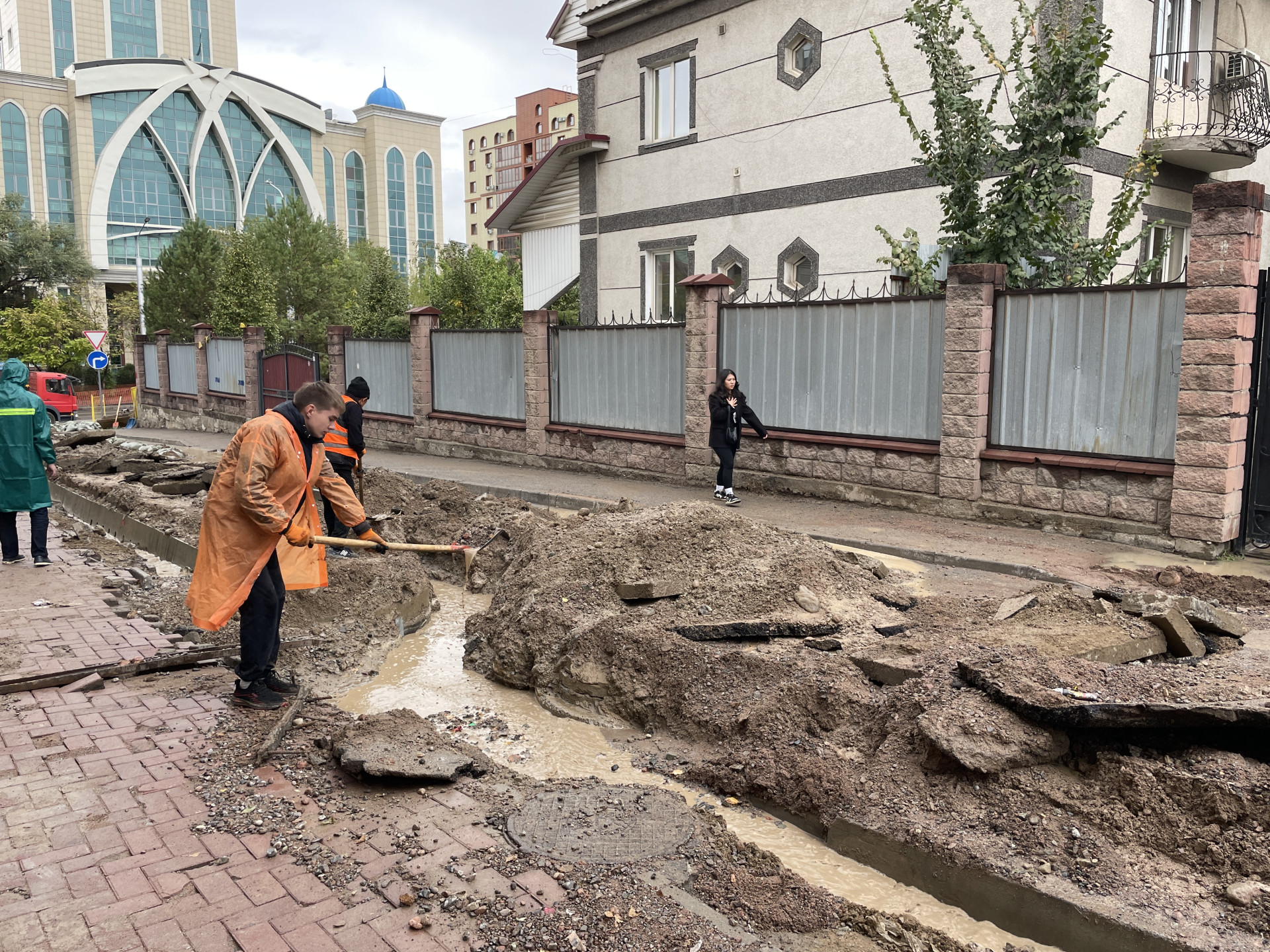 Местные также добавили, что работы всё ещё ведутся, но очень хаотично. Дорогу, по их словам, чуть ли не каждый день "то раскапывали, то закапывали". Кроме того, жители отметили, что в этом районе явные проблемы с системой ливнёвок: когда в городе идёт дождь, арыки не справляются с потоком воды и всё вокруг заливает.