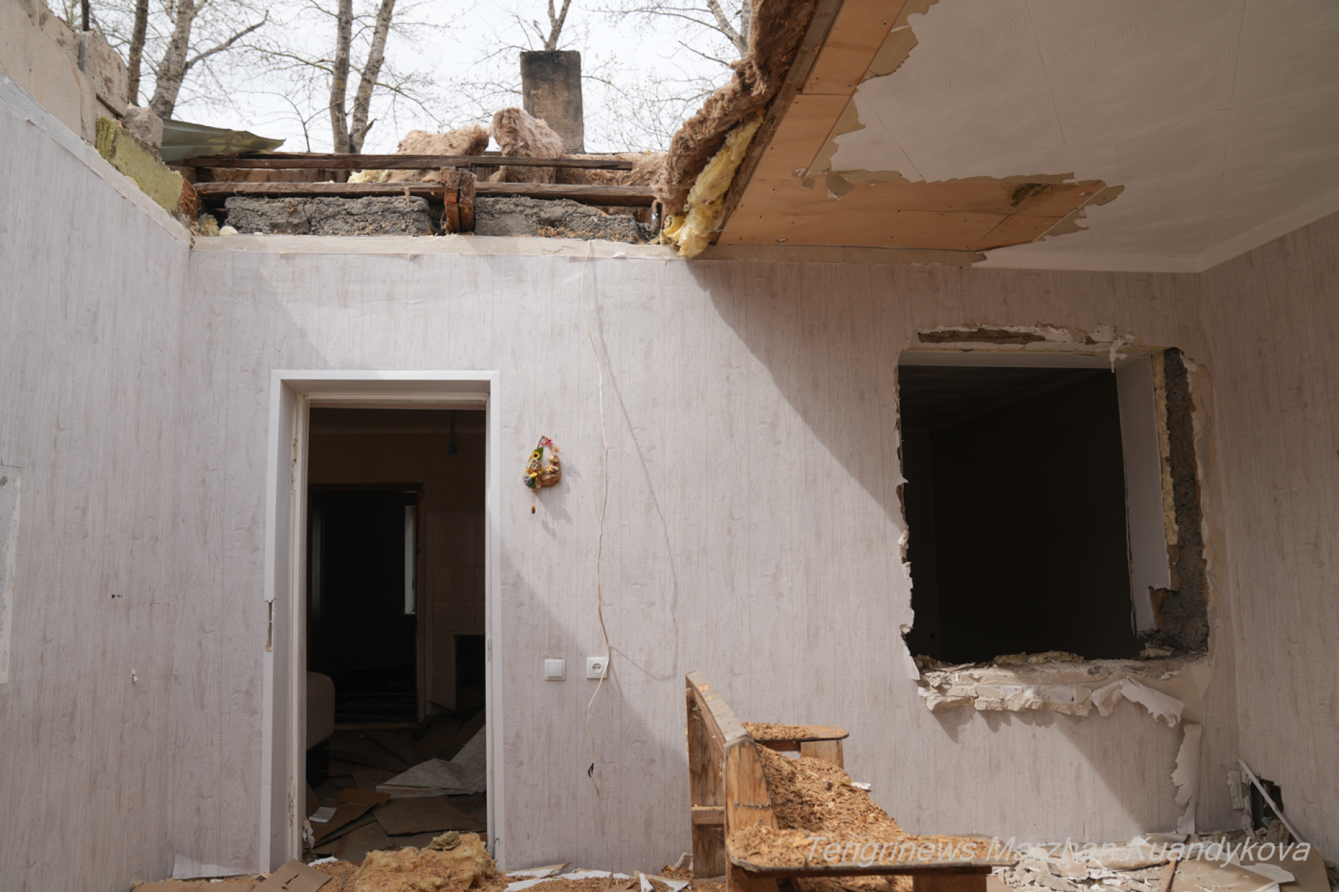 "Всё за ночь вынесли. Внутри ничего не осталось. Ещё вчера и окна, и всё остальное на месте было. Я рабочим говорил: крышу разбирайте, а двери не трогайте. То, что мне нужно было, я сразу забрал, а остальное оставил здесь. Думал, хоть за копейки через объявления продам".