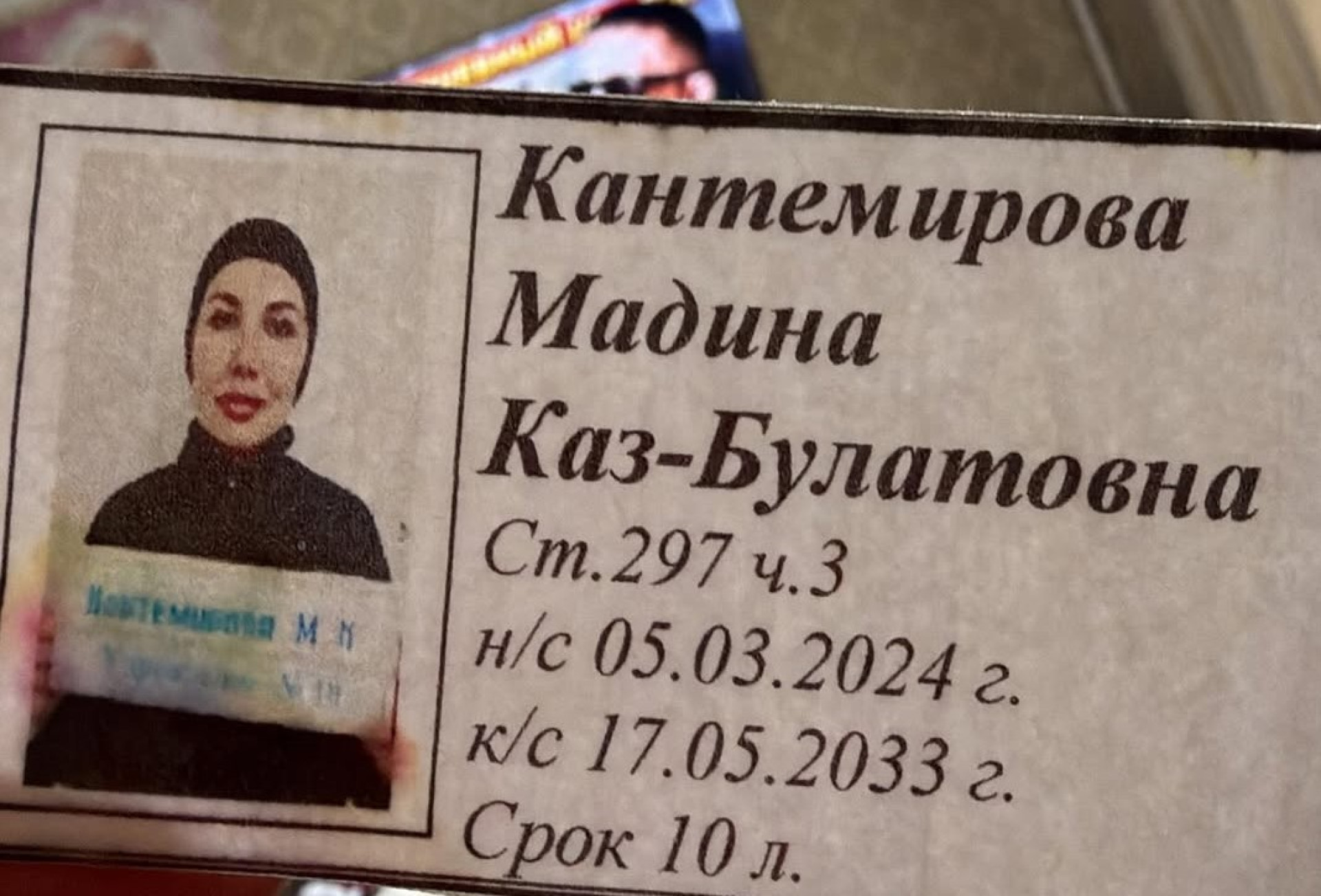 "Паспорт" осуждённого, который есть у каждого заключённого. Фото предоставила Мадина Кантемирова