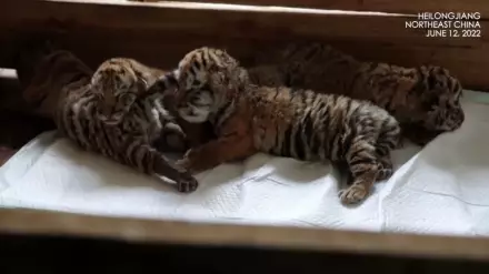 Согласно данным портала, детеныши тигра родились в Китайском центре разведения кошачьих Хэндаохэцзы в северо-восточной китайской провинции Хэйлунцзян. На свет появились три самки и один самец.