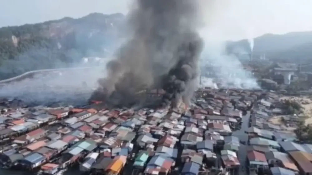 Город на сваях сгорел на острове Борнео в Малайзии