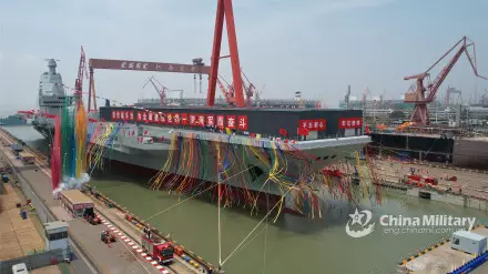 Шанхайская верфь Jiangnan Shipyard спустила на воду третий авианосец, построенный полностью по китайскому проекту Type 003 "Фуцзянь".