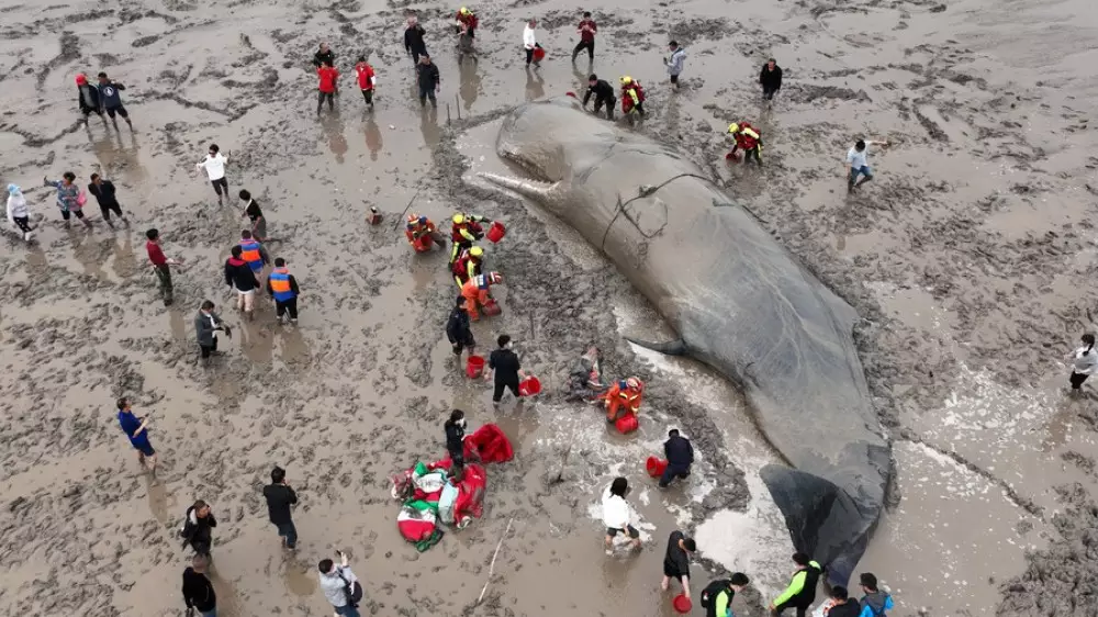 "Место должно быть достаточно глубоким, находиться далеко от берега и иметь достаточно пространства для маневра. Мы выбрали район в 37 километрах от места, где кит был выброшен на берег", - сказал старший инженер министерства природных ресурсов и один из экспертов по спасению на месте происшествия Чжай Хунчан.