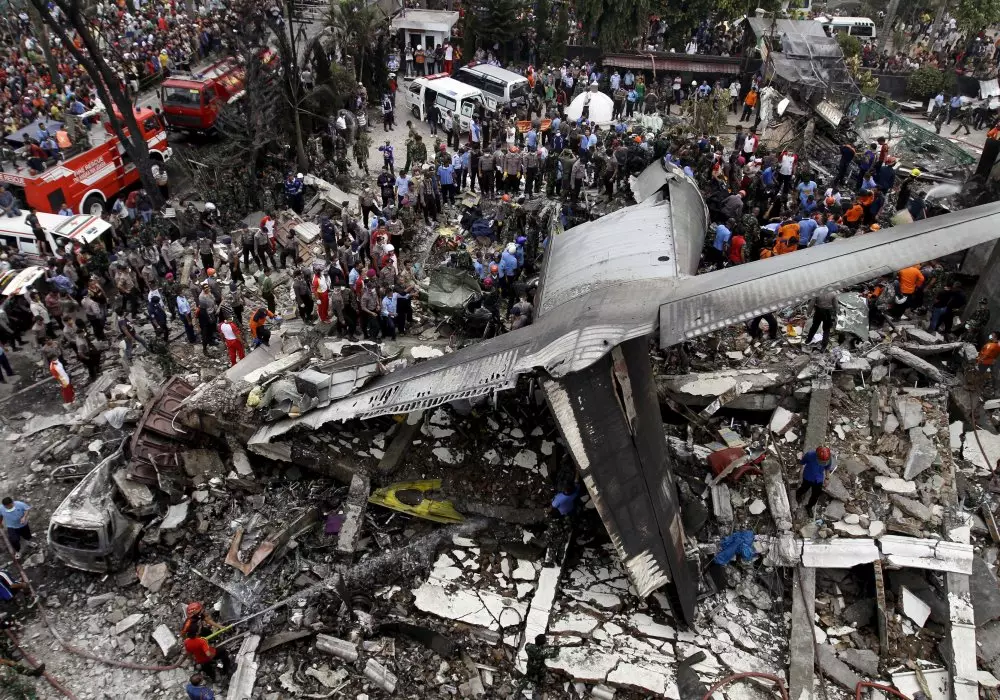 Напомним, обломки Hercules C-130 упали на отель Golden Eleven и еще два здания. Сообщалось, что крушение самолета произошло после того, как военный борт покинул базу Медан и направился на остров Натуна. На месте инцидента работают десятки спецмашин. Ранее сообщалось о тридцати погибших. "По последним данным, 30 человек погибли. Число погибших может возрасти", - заявлял представитель спасательной службы Индонезии Хисара Турнипа. Полицейские также нашли несколько тел погибших среди обломков зданий. Пострадавшие поступают в больницу имени Адама Малика (Adam Malik).