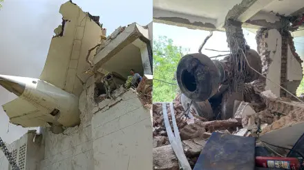 Также в соцсетях опубликовали фотографии обломков после падения самолета на общежитие для врачей.