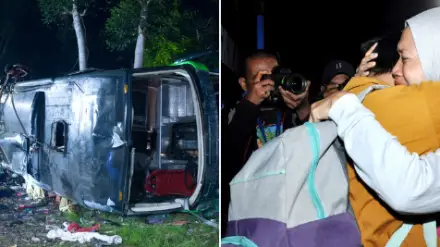 Автобус с 61 учеником и учителем возвращался в школу в Депоке недалеко от столицы Джакарты поздно вечером в субботу из курортной зоны после выпускного вечера, сообщил представитель полиции Западной Явы Жюль Абрахам Абаст.