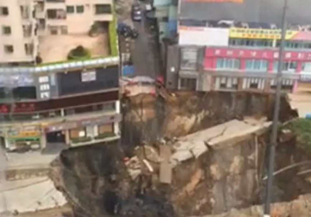 Станция метро провалилась в огромную воронку в Китае Кадр из видео с сайта youtube.com
