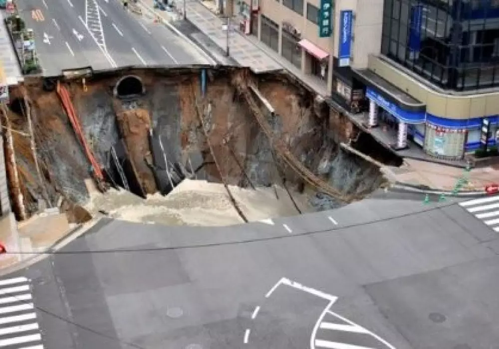Ondertussen in Japan... #sinkhole pic.twitter.com/TYeu7uWACD