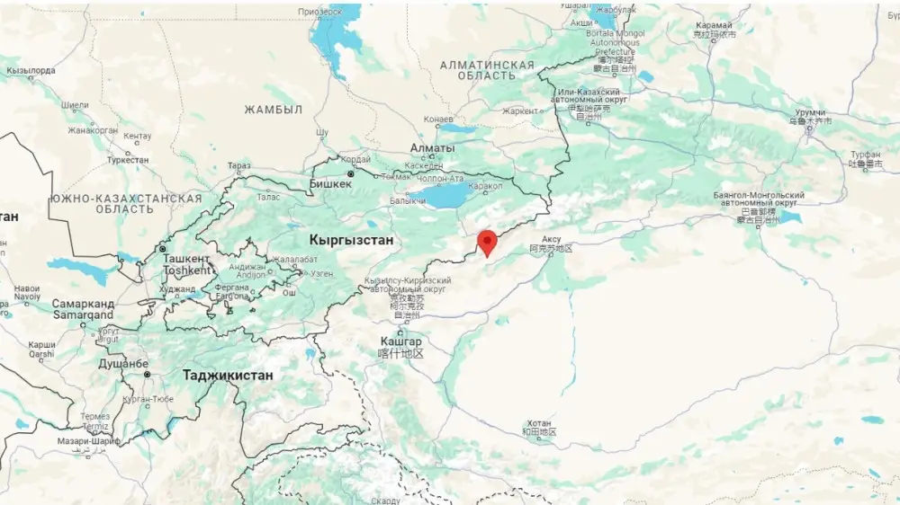 Землетрясение в Алматы: очередной афтершок произошел в Китае Скриншот Google Карты