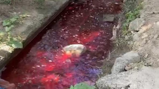 Река стала ярко-красной под Алматы