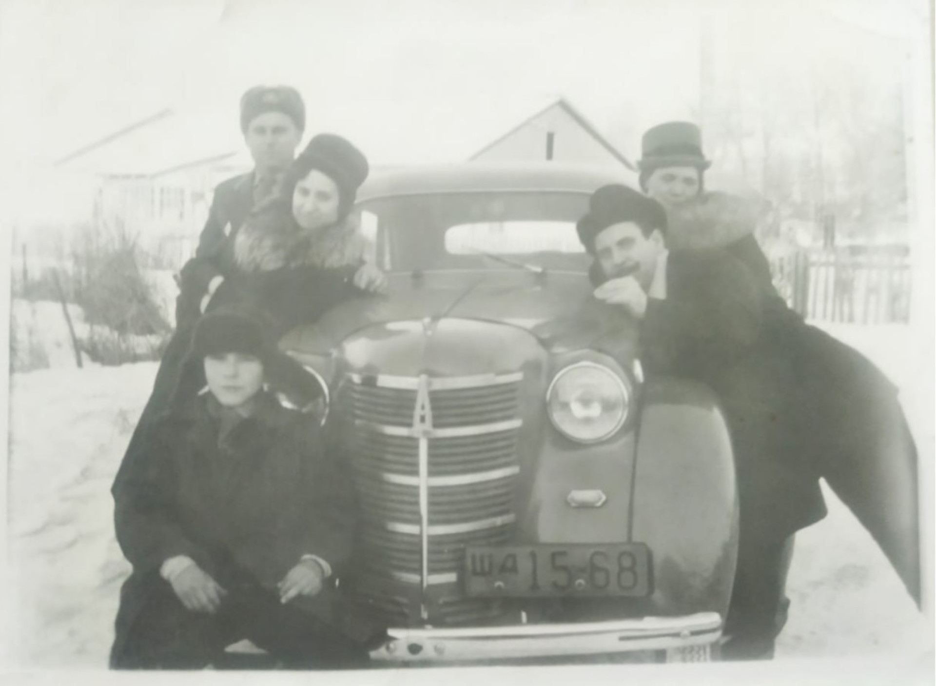 Фото из семейного альбома: на переднем плане - отец, он сидит на бампере; справа - дедушка.