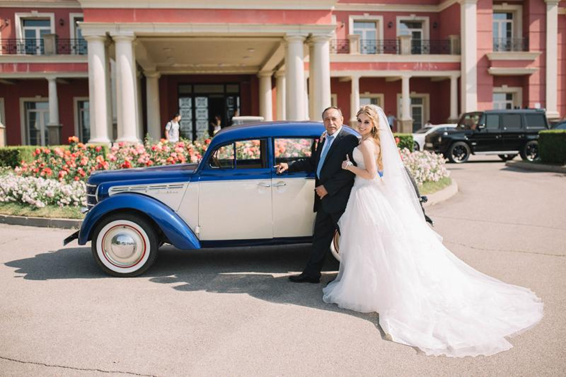 "У меня было всего три месяца. Я попросила папу прилететь хотя бы за две недели до свадьбы и взять на себя координацию проекта. Всё это время работа шла без остановки: ежедневные созвоны с отцом, постоянные встречи с мастером Махамбетом. В итоге автомобиль успели восстановить - "Москвич" стал частью свадебной съёмки", - отметила она.