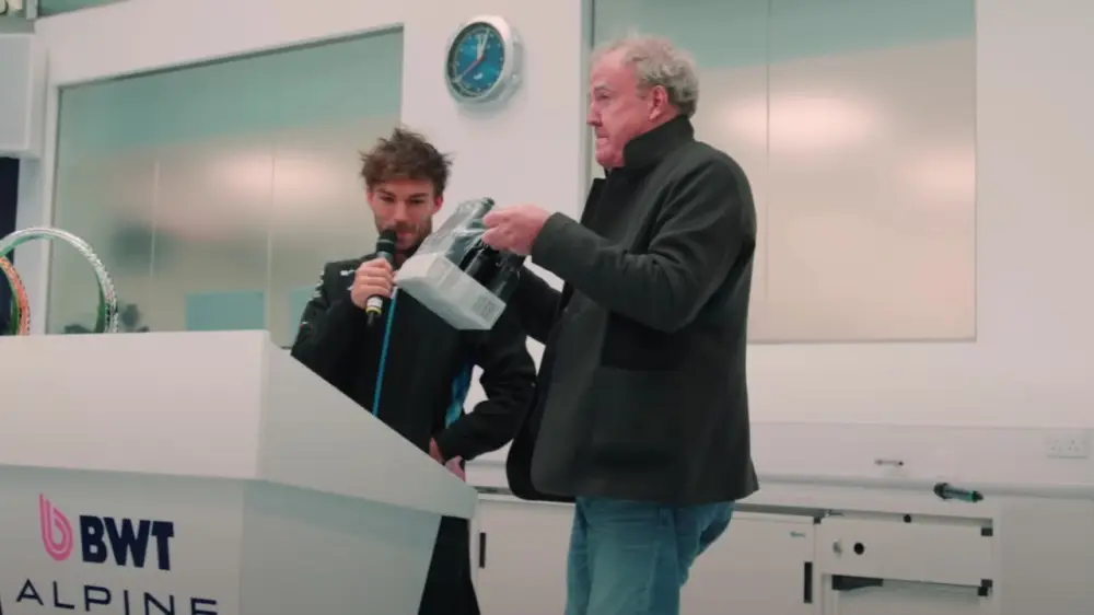 В ответ команда подарила Кларксону переднее крыло и носовой обтекатель болида Alpine F1. Джереми планирует разместить их в своем пабе The Farmer's Dog, который вскоре примет рождественскую вечеринку команды Red Bull.