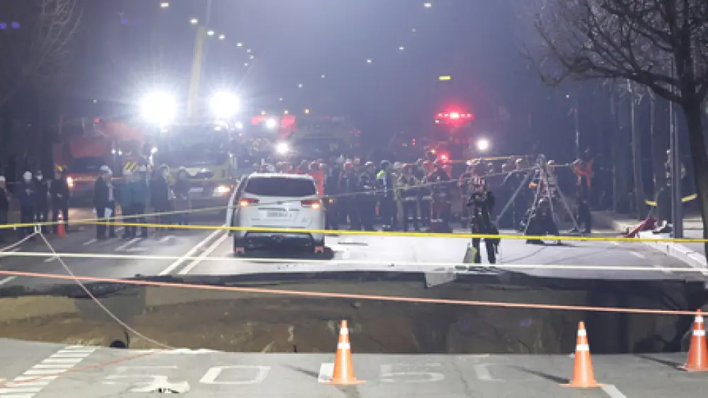 Мэр Сеула О Се Хун призвал принять меры безопасности, отметив, что провал на шестиполосной дороге продолжает расширяться.