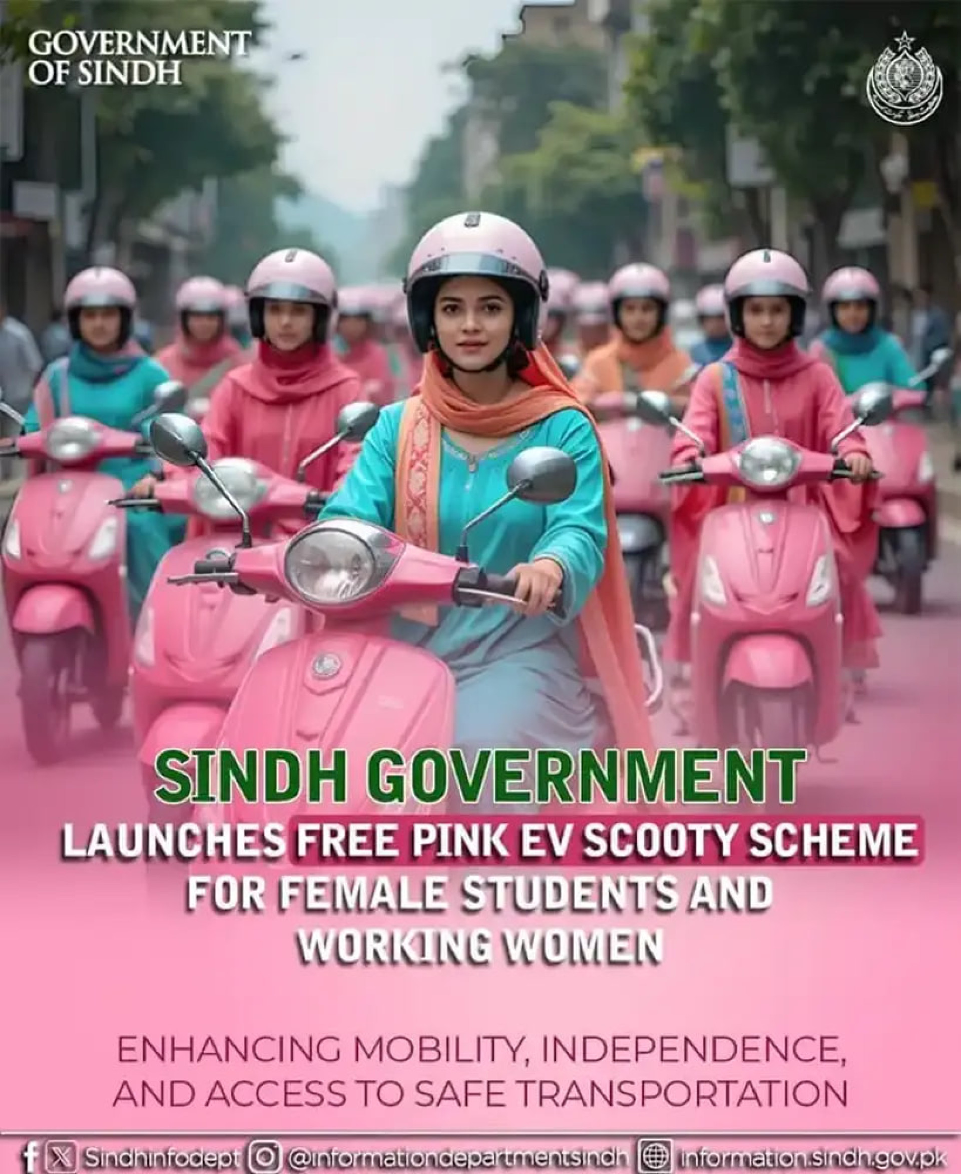 В провинции Синд, Пакистан, запустили программу, обеспечивающую женщин бесплатными электрическими скутерами розового цвета, передаёт Tengri Auto.