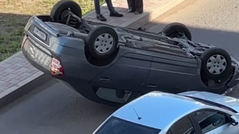 Жителей спального района Астаны сегодня разбудил шум сигнализации, причиной этому стал перевернутый во дворе автомобиль, передает Tengri Auto.