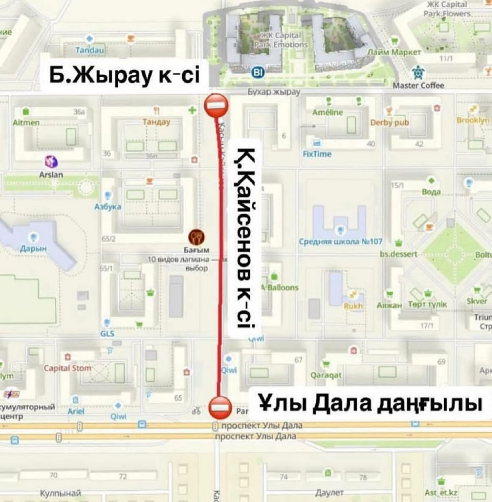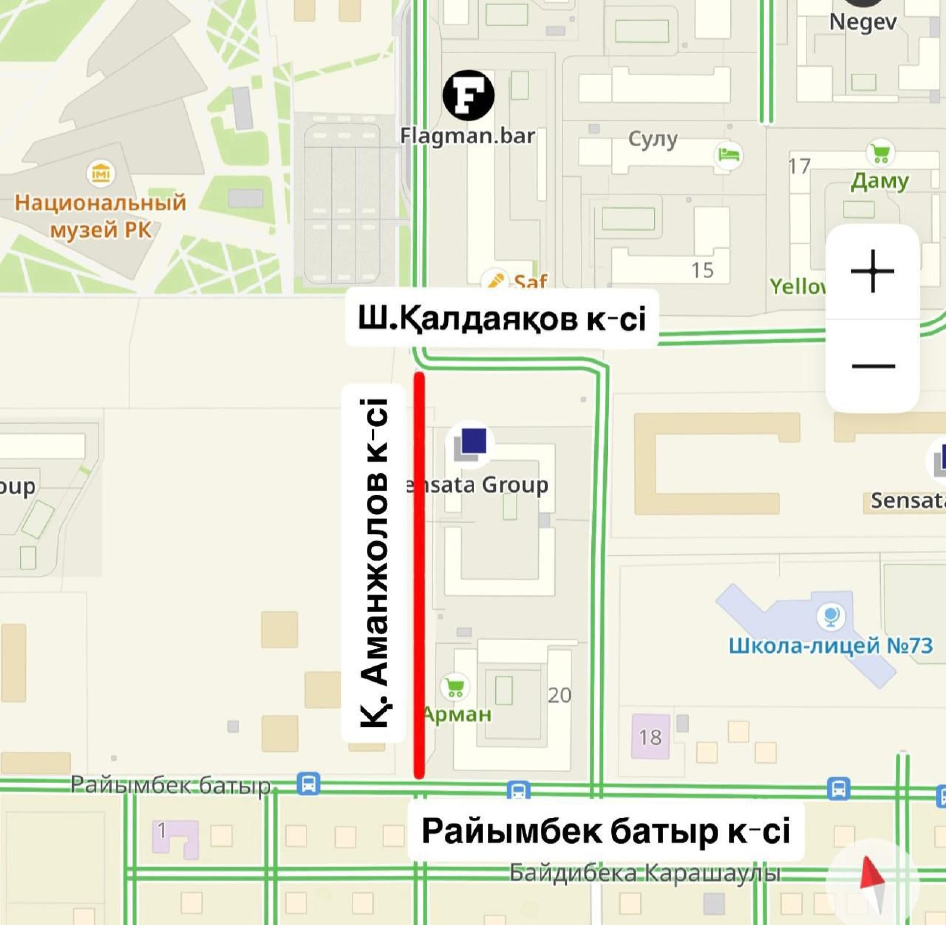 По данным акимата, недавно был открыт проезд по улице Кайсенова от проспекта Улы Дала до улицы Бухар жырау.