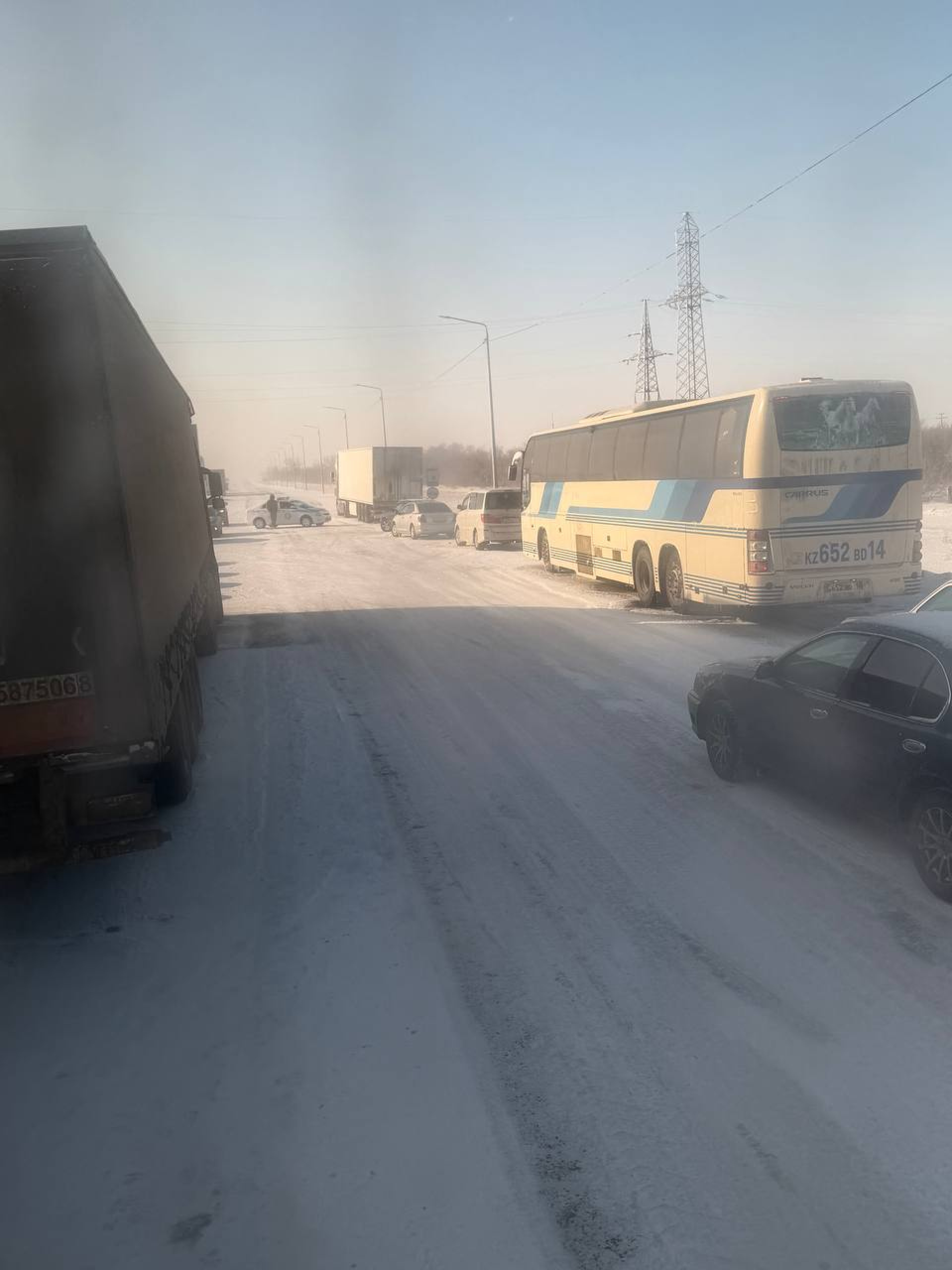 Колонна автомобилей застряла на несколько часов на трассе Шарбакты — Павлодар, об этом Tengri Auto рассказал читатель.