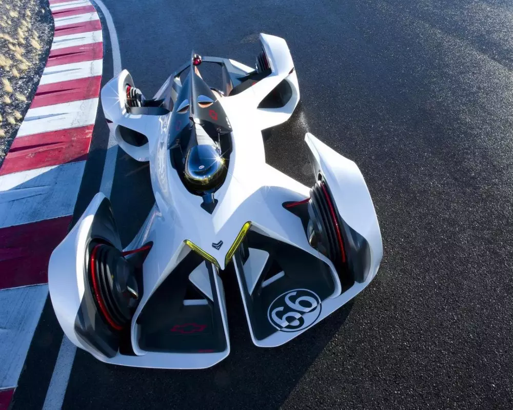 Авто от Chevrolet носит название Chapparal 2X Vision Gran Turismo. Оно является данью уважения плодотворному сотрудничеству марки Chevrolet и гоночной команды Chapparal racing, начавшемуся более 45 лет назад. Гоночное авто построено на шасси из композитных материалов и обладает аэродинамичным кузовом. Так, ради лучшей обтекаемости пилот в кабине не сидит, а буквально лежит на животе, вытянувшись вдоль.