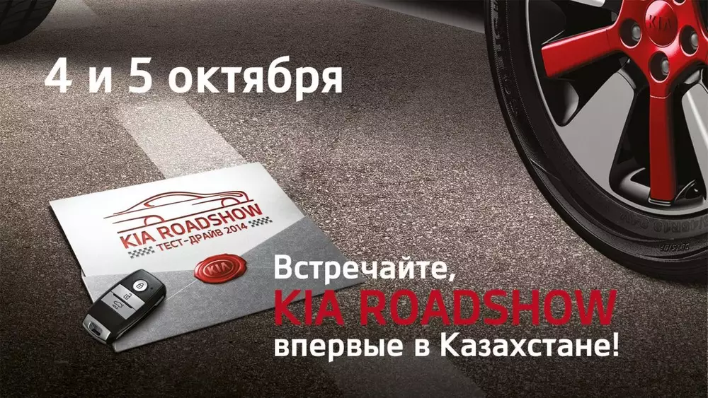 KIA Roadshow впервые пройдет в Казахстане. 4 и 5 октября в южной столице состоится масштабный и эффектный праздник. Каждый сможет сесть за руль, оценить удобство салона и ходовые характеристики автомобилей линейки бренда KIA на долгожданном тест-драйве.
