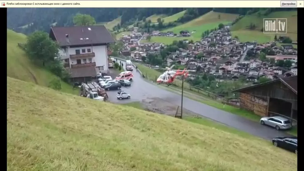 Немецкий гонщик сбил двух человек на съемках рекламы в Альпах Пострадавших доставил в больницу вертолет. Кадр: Bild.tv