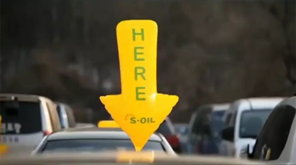 По статистике, каждый день сеульские автомобилисты вынуждены проезжать минимум 500 метров в поисках свободного места, то есть 15 километров в месяц. Топливо в Сеуле стоит недешево - примерно два доллара за литр. Оригинальный способ позволяет сэкономить эти затраты. Необходимо привязать на парковочное место ярко-желтую надувную стрелочку с надписью "Здесь". Шарик поднимается в воздух и сигнализирует об освободившемся месте и опускается, когда машина заезжает на парковку. Водителю не надо наматывать круги по стоянке - стрелку видно издалека.