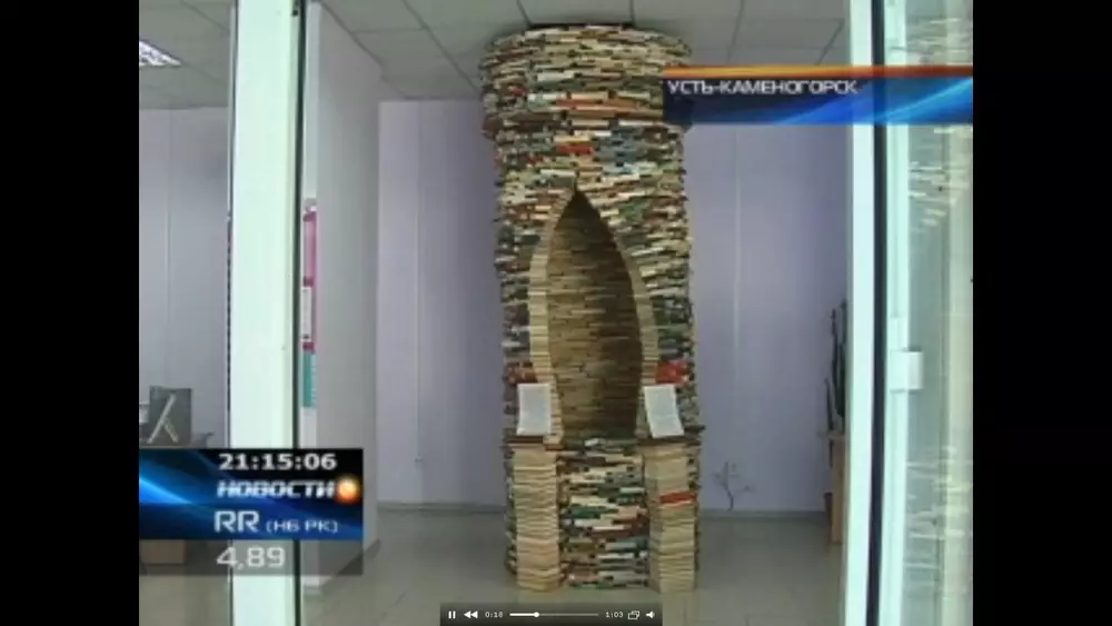 В Усть-Каменогорске в библиотеке появилась необычная башня из книг, сообщает телеканал КТК.