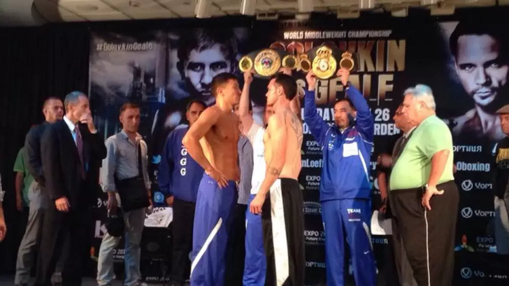 Чемпион мира по боксу в среднем весе по версиям WBA и IBO казахстанец Геннадий Головкин и австралийский боксер Дэниэл Гил прошли официальную процедуру взвешивания, сообщают Vesti.kz.