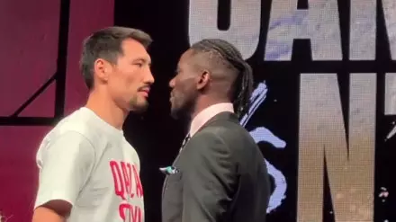 Казахстанский боксер-средневес Жанибек Алимханулы и бывший чемпион мира из Франции Хассан Н'Дам Н'Жикам провели дуэль взглядов, передает Tengrinews.kz со ссылкой на Vesti.kz.