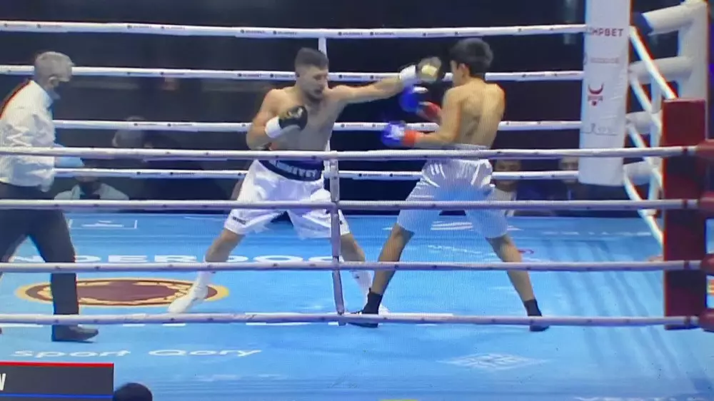 Затем на ринг вышли представители первого полусреднего веса Акниет Алимбай (Казахстан) и 19-летний Зайнобиддин Собиров (Узбекистан). Поединок дебютантов прошел всю дистанцию - по итогам четырех раундов победу единогласным решением судей одержал казахстанец.