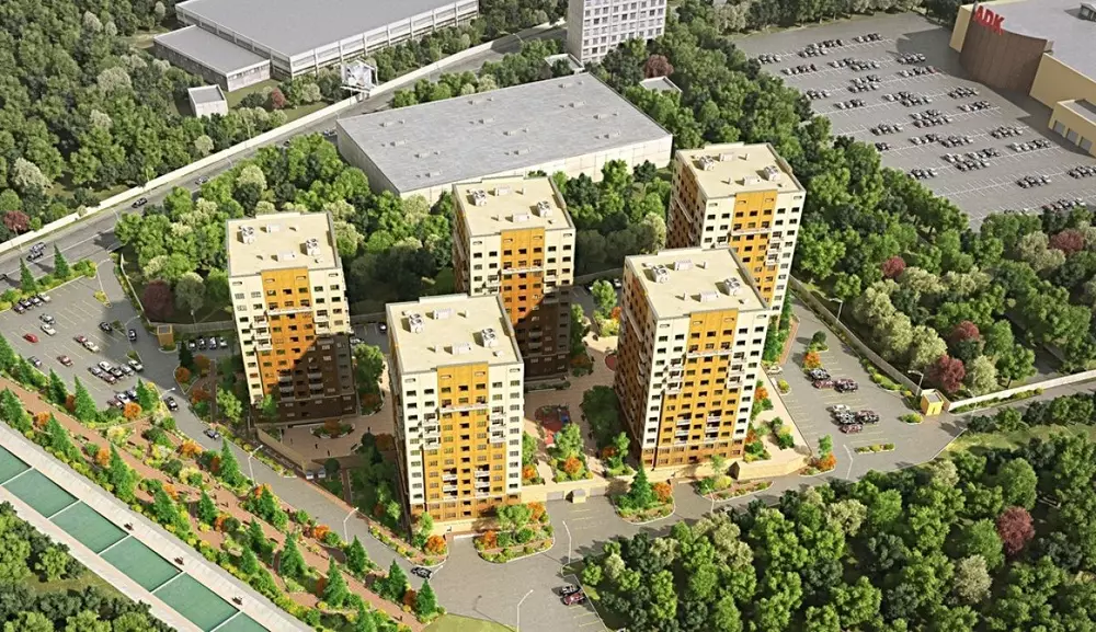 Жилой комплекс "Симфония" состоит из пяти 12-этажных домов, расположенных в шахматном порядке друг от друга. Благодаря столь рациональному распределению зданий, солнечный свет будет проникать в каждую квартиру, что обеспечит естественное освещение в комнатах.