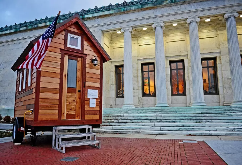 Лот выставила строительная компания Tumbleweed, которая специализируется на строительстве маленьких домов. В описании лота объясняется, что площадь деревянного строения составляет 6,03 квадратных метра. В миниатюрном домике есть кухня с холодильником, душевая и спальня, которая находится на чердаке. Сам коттедж находится на платформе прицепа, которая также входит в стоимость.