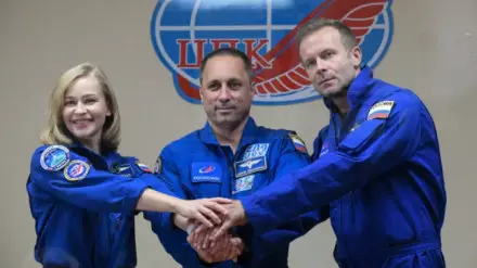 Корабль с первым в мире киноэкипажем возвращается на Землю
