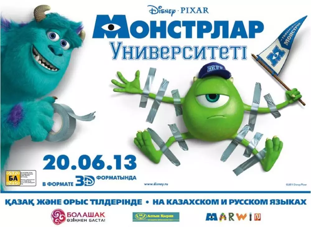 Предварительный показ мультфильма "Университет монстров" на казахском языке состоялся в Астане, передает корреспондент Tengrinews.kz. "Мультфильмы компании Walt Disney семейные, они не рекламируют кока-колу, чипсы, считая, что это вредно. Мы хотим расширить аудиторию тех, кто ходит на мультфильмы на казахском языке, чтобы внуки могли с бабушками, дедушками прийти. Таким образом, мы продвигаем семейные ценности, казахский язык", - отметил заместитель председателя НДП "Нур Отан", председатель Совета ассоциации "Болашак" Бауыржан Байбек, который присутствовал на предварительном показе мультфильма в Астане. По словам организаторов показа, дубляж фильма обошелся в 16 миллионов тенге. Всего в проекте были задействованы 40 актеров. Майка Вазовски озвучил Дулыга Акмолда, известный по фильму "Биржан-сал". Рэнди Боггса - Азамат Канапья, который также озвучивал Мэтра из "Тачки-2". Примечательно, что голос Азамата в роли Мэтра (в мультфильме "Көліктер-2" - Прим. автора ) был признан одним из лучших в мире студией Disney. "Конечно, важно отечественную индустрию развивать, но, вместе с тем, у голливудских фильмов на сегодня самые высокие стандарты. Дети их так и так смотрят, хотим мы этого или нет. Пусть тогда они смотрят их на казахском языке", - подчеркнул Байбек. На предварительный показ были приглашены воспитанники детских домов, представители деловых и политических кругов Казахстана, которые занимаются вопросами развития казахского языка. Для широкого круга зрителей фильм выйдет на экраны 20 июня во всех кинотеатрах Казахстана. Как сообщалось ранее, маленьких монстров озвучили воспитанники областного детского дома №1 поселка Баганашыл.