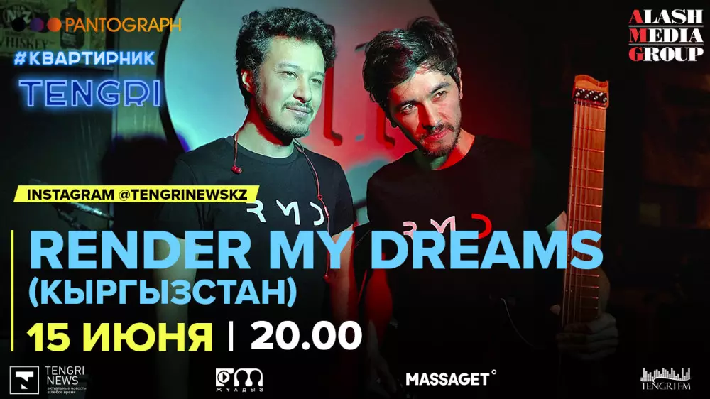 Медиахолдинг Alash Media Group совместно с продюсерским центром Pantograph продолжает серию онлайн-концертов #КвартирникTengri. Сегодня, 15 июня, в 20.00 состоится Insta-Live с кыргызстанской группой Render my Dreams.