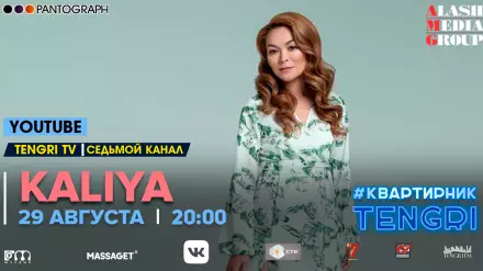 Медиахолдинг Alash Media Group совместно с продюсерским центром Pantograph продолжает серию онлайн-концертов #КвартирникTengri. Концерт казахстанской певицы KALIYA пройдет в эфире YouTube-канала Tengri TV сегодня, 29 августа, в 20.00.