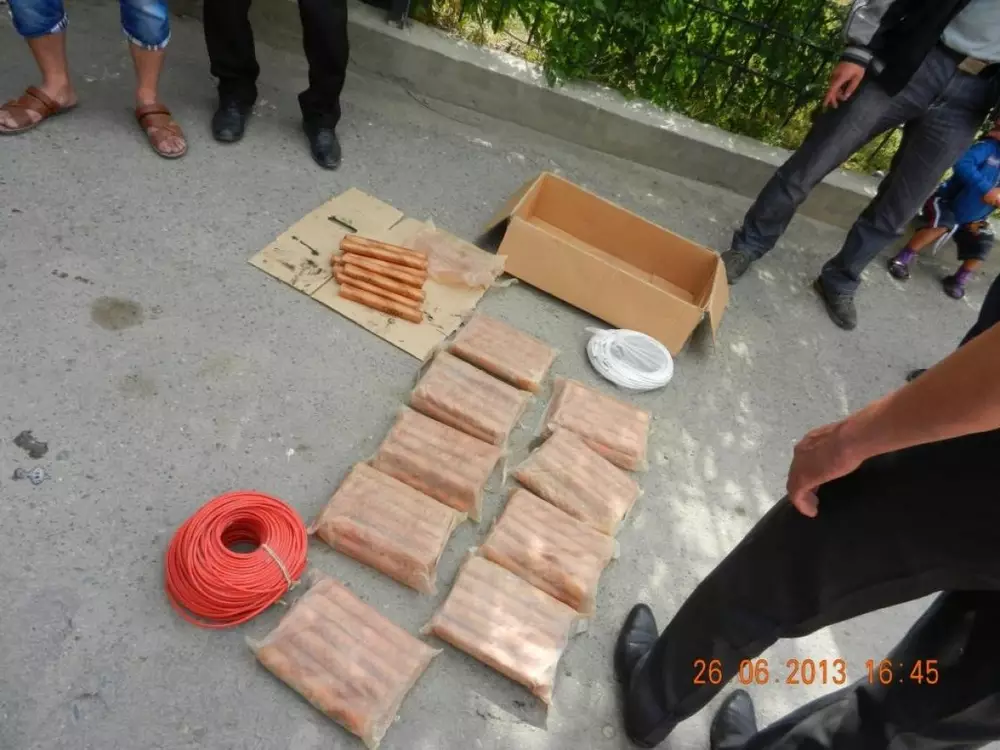Машиной управлял житель Джалал-Абадской области КР. В ходе досмотра автомашины были изъяты 100 пакетов со взрывчатым веществом - аммонитом общим весом 20 килограммов, а также 30 комплектов огнепроводного шнура с капсюль-детонатором и 122 метра детонирующего шнура.