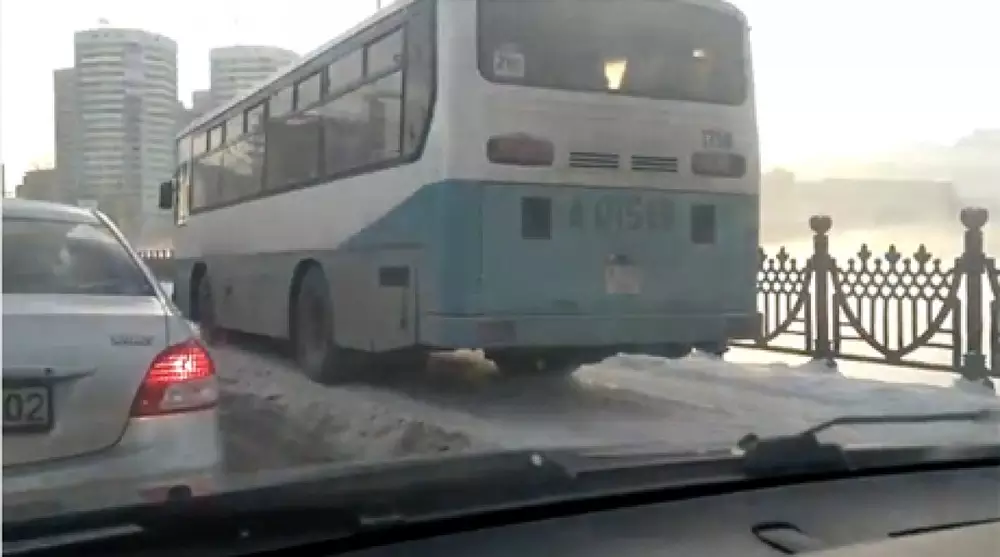Инцидент произошел в районе водоема "Сайран" по улице Толе би. На дороге в образовавшейся пробке скопились десятки машин. Некоторые особо нетерпеливые водители, в том числе двух пассажирских автобусов, предпочли объехать затор, нарушив правила движения.